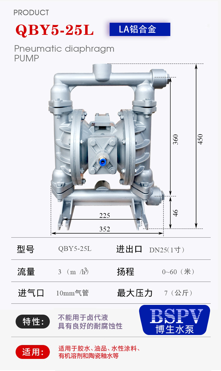 QBY5-25L型鋁合金氣動(dòng)隔膜泵