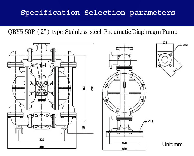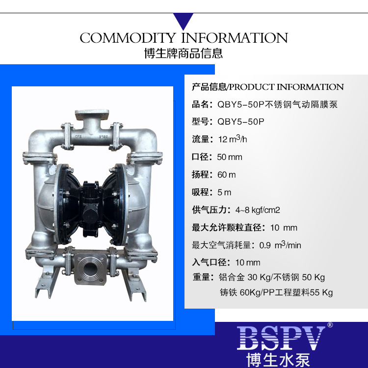 QBY5-50P型不銹鋼氣動隔膜泵
