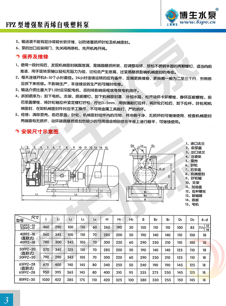 博生牌FPZ型直聯(lián)式塑料自吸泵