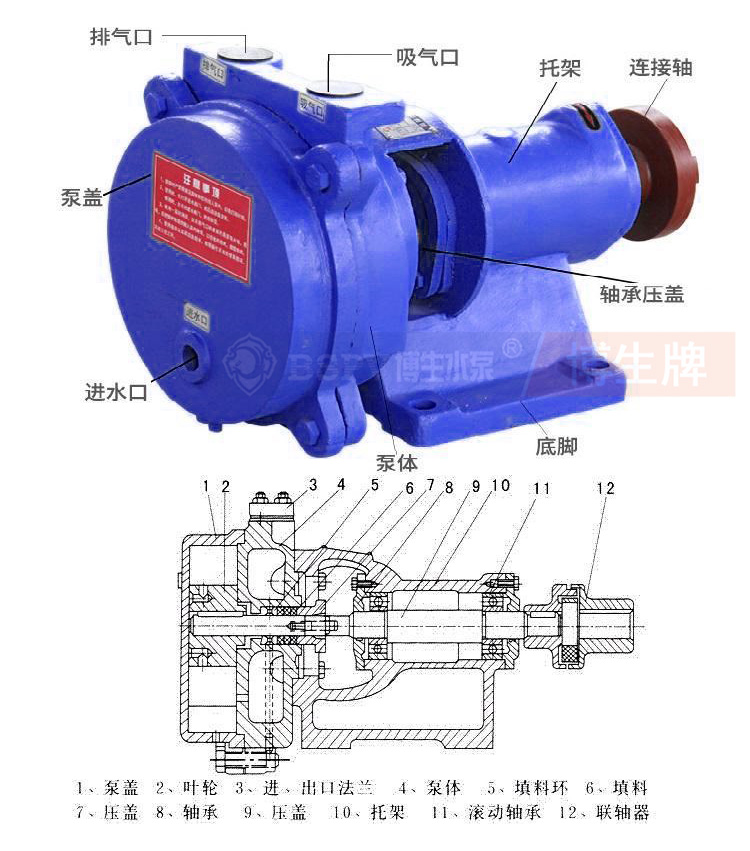 SZB懸臂式水環(huán)真空泵為單級單吸懸臂式水環(huán)真空泵,泵的出、入口對稱偏心向上??晒┏槲諝饣蚱渌鼰o腐蝕性、不溶于水、不含固體顆粒的氣體。吸入壓力為-0.086Mpa。目前制造的SZB型水環(huán)式真空泵型號有:SZB-4、 SZB-8。其中4(8)表示當柱高為520毫米時的氣量(升/秒)??蓮V泛用